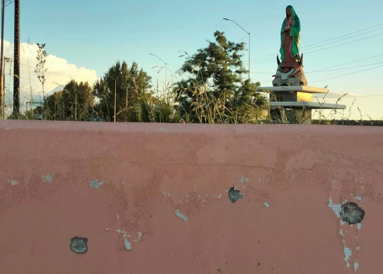 Marcas de bala en glorieta donde se encuentra imagen de la Virgen de Guadalupe....