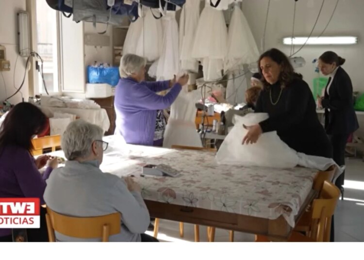 Voluntarias trabajan en el taller de vestidos de novia en el interior del Santuario...