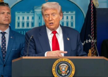El presidente Donald Trump ofrece una rueda de prensa con el secretario de Defensa, Pete Hegseth, en agosto de 2025....