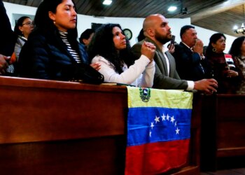 Migrantes venezolanos durante la Misa que el Cardenal Baltazar Porras celebró en Quito (Ecuador) el 10 de septiembre de 2024....