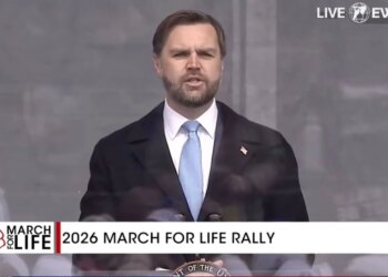El vicepresidente estadounidense, JD Vance, habla en la Marcha por la Vida el 23 de enero de 2026 en Washington,...