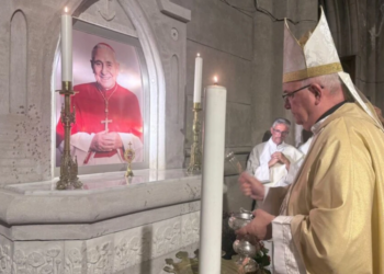 Mons. Giobando bendice el altar dedicado al Beato Pironio / Crédito: Obispado de Mar del Plata En comunión con la...