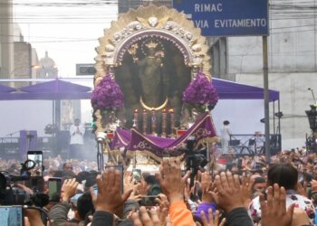 La imagen de la Virgen de la Nube en el anda del Señor de los Milagros este sábado 18 de...