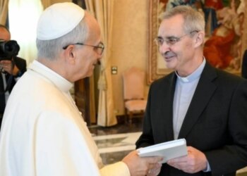 El Papa León XIV junto al director de "La Civiltà Cattolica", P. Nuno da Silva, SJ. / Crédito: Vatican Media....