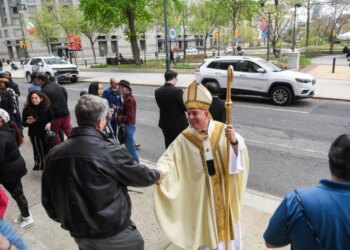 El Arzobispo de Filadelfia, Mons. Nelson J. Pérez, se dirige a los miembros de su congregación en la Basílica Catedral...