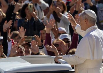 El Papa saluda a los peregrinos presentes en la audiencia de este sábado. / Crédito: Daniel Ibáñez/EWTN. , Sep 27,...