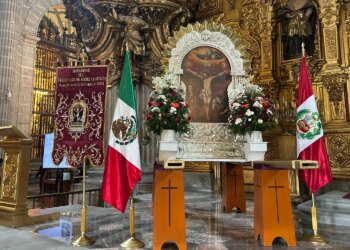 El anda del Señor de los Milagros ya se encuentra en el Altar del Perdón, en la Catedral Metropolitana de...