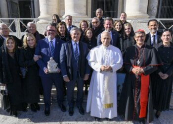 La comisión de la Junta de Beneficencia de Guayaquil en su encuentro con el Papa León XIV, el 26 de...