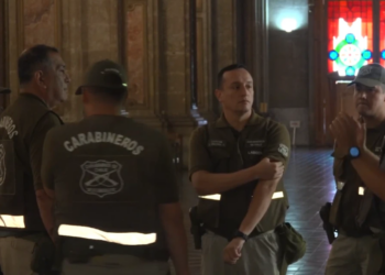 Carabineros trabajan en la Catedral de Santiago / Crédito: Captura de video/Cortesía Arzobispado de Santiago El Arzobispado de Santiago informó...