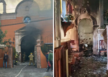 Incendio en la rectoría de la Sagrada Familia. / Crédito: Protección Civil Michoacán Un hombre provocó un incendio en una...