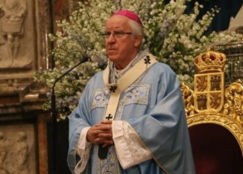 El Arzobispo de Sevilla, Mons. José Ángel Saiz Meneses, con la casulla azul purísima por la Inmaculada. / Crédito: Arzobispado...