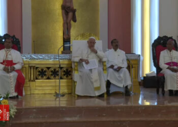 El Papa se ha reunido con los obispos, sacerdotes, diáconos, consagrados, seminaristas y catequistas de Timor Oriental, en la catedral...