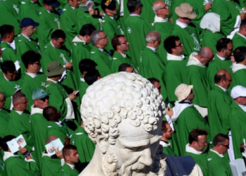 Cada vez es más habitual en Roma, en grandes peregrinaciones y encuentros multitudinarios: centenares o miles de sacerdotes apiñados bajo...