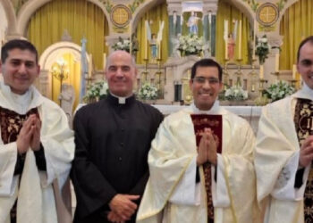 El obispo auxiliar de Rosario (Argentina), Monseñor Ernesto Fernández, ordenó sacerdotes a los padres Andrés González de Paz, Emiliano Conturso...