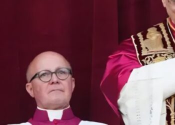 Monseñor Agostini en la logia de San Pedro junto a León XIV el día de su elección Un comentario captado...