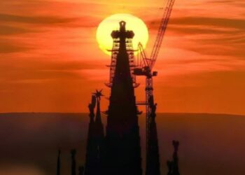 La culminación de la torre de Jesucristo corona la Sagrada Familia con una cruz luminosa de 17 m a 172...