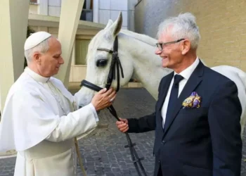 Antes de la Audiencia General del miércoles, un polaco donó un caballo árabe de pura raza al Papa León XIV,...