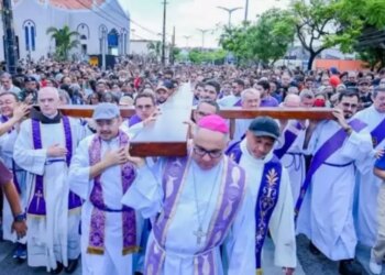 El Arzobispo local cargó la cruz junto con varios sacerdotes, mientras otros presbíteros atendían confesiones durante el trayecto de 5...