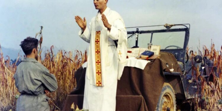 Lejos de ser una imagen acartonada de otro siglo, el contenido de la foto de la “Misa en el Jeep” con el P. Emil Kapaun, de una manera muy real, sigue vivo hoy.