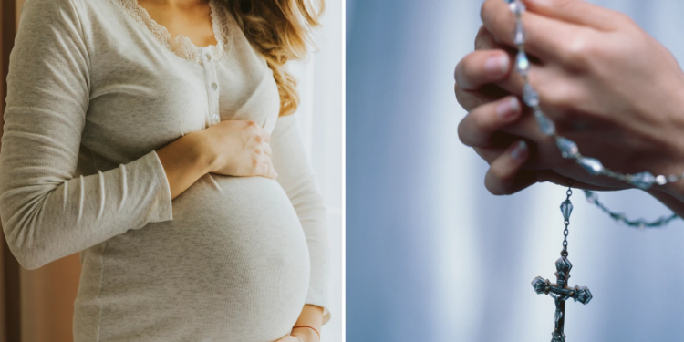 Imagen referencial de una persona orando por un niño en el vientre. / Crédito: Crédito: BGStock72; Canva / Stockbyte; Canva