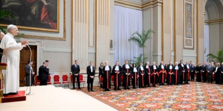 (ZENIT Noticias / Ciudad del Vaticano, 14.03.2026).- En el Aula de las bendiciones de la Basílica Vaticana fueron recibidos en audiencia especial las personas que trabajan en el ámbito de la impartición de la justicia en la Ciudad del Vaticano. La audiencia tuvo lugar en el contexto de la ceremonia de apertura del año judicial del Tribunal del Estado de la Ciudad del Vaticano. A continuación la traducción al castellano que hizo ZENIT del discurso del Santo Padre: