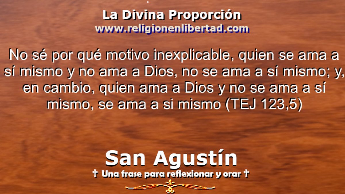 No sé por qué motivo inexplicable, quien se ama a sí mismo y no ama a Dios, no se ama a sí mismo; y, en cambio, quien ama a Dios y no se ama a sí mismo, se ama a si mismo 🔹San Agustín. Tratado sobre el Evangelio de San Juan (123, 5)🔹