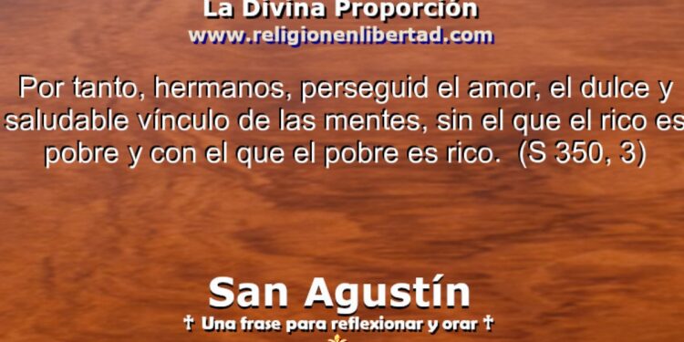 Por tanto, hermanos, perseguid el amor, el dulce y saludable vínculo de las mentes, sin el que el rico es pobre y con el que el pobre es rico. 🔹San Agustín. Sermón 350, 3🔹