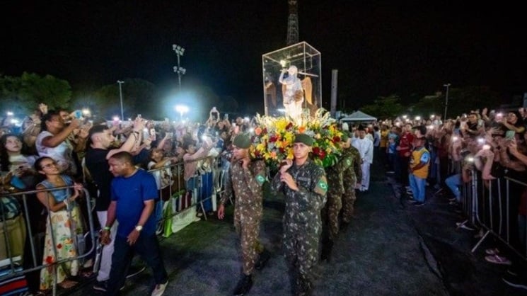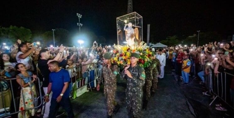 Más de 20 mil fieles de la capital y del interior recibieron con alabanzas y oraciones la imagen del Príncipe de la Milicia Celestial, procedente de la Gruta de Gargano, en Italia, y está en peregrinación en Brasil. El evento contó con la celebración de la Santa Misa, presidida por el Arzobispo Arquidiocesano, Mons Beto Breis.