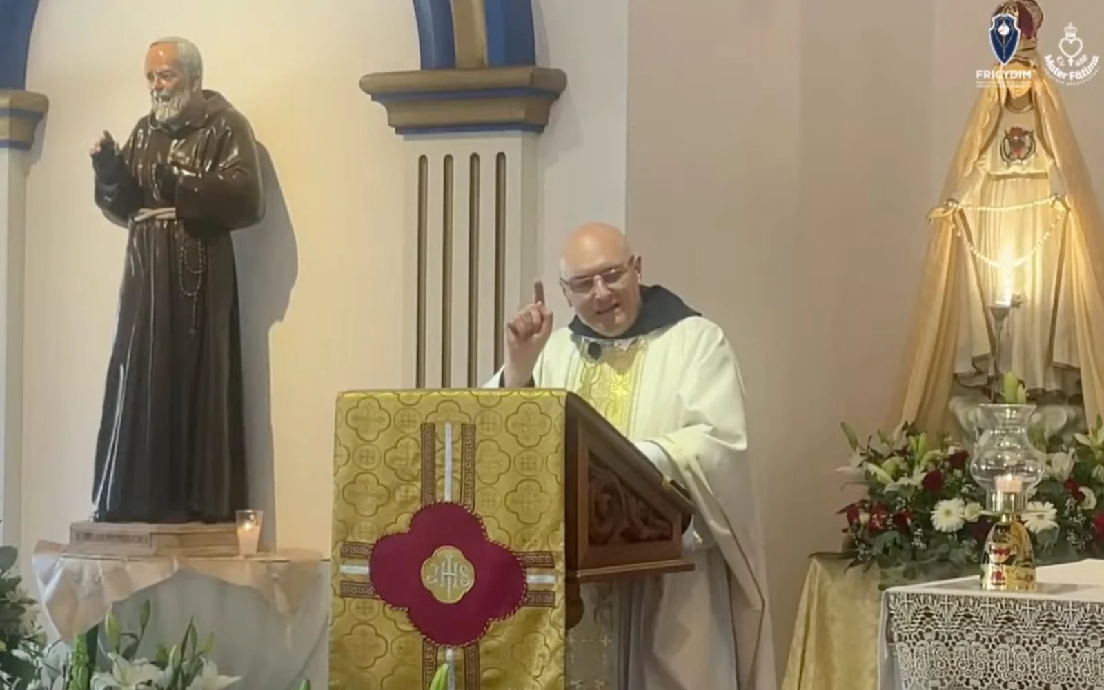El P. Carlos Spahn preside la celebración de la Santa Misa el 27 de abril de 2025, en la sede de la FRICyDIM. / Crédito: Captura de video/Canal oficial de YouTube de la Fricydim.