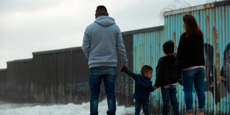 Familia frente al muro entre Estados Unidos y México. / Crédito: Matt Gush / Shutterstock.