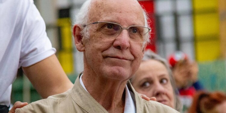 P. Júlio Lancellotti durante el acto “Elas Ficam e em Defesa do MST”, realizado el 8 de julio de 2023 en defensa del Movimiento de los Trabajadores Rurales Sin Tierra (MST), en São Paulo (Brasil). / Crédito: Sâmia Bomfim / Flickr, CC BY 2.0.