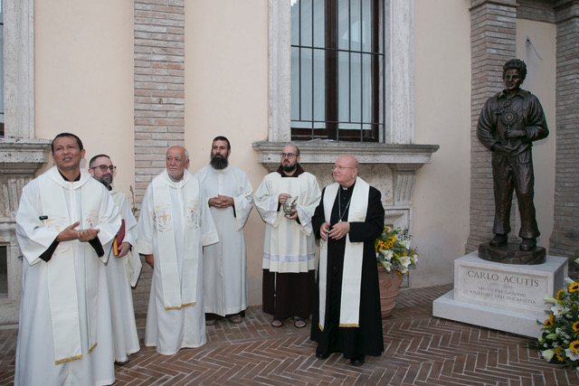 (ZENIT Noticias / Asís, 15.09.2025).- El viernes 5 de septiembre se inauguró en la entrada del Obispado de Asís, tras la misa vespertina en Santa María la Mayor, una nueva escultura de San Carlo Acutis realizada, quien fue canonizado por el Papa León XIV en una ceremonia celebrada en la Plaza de San Pedro.