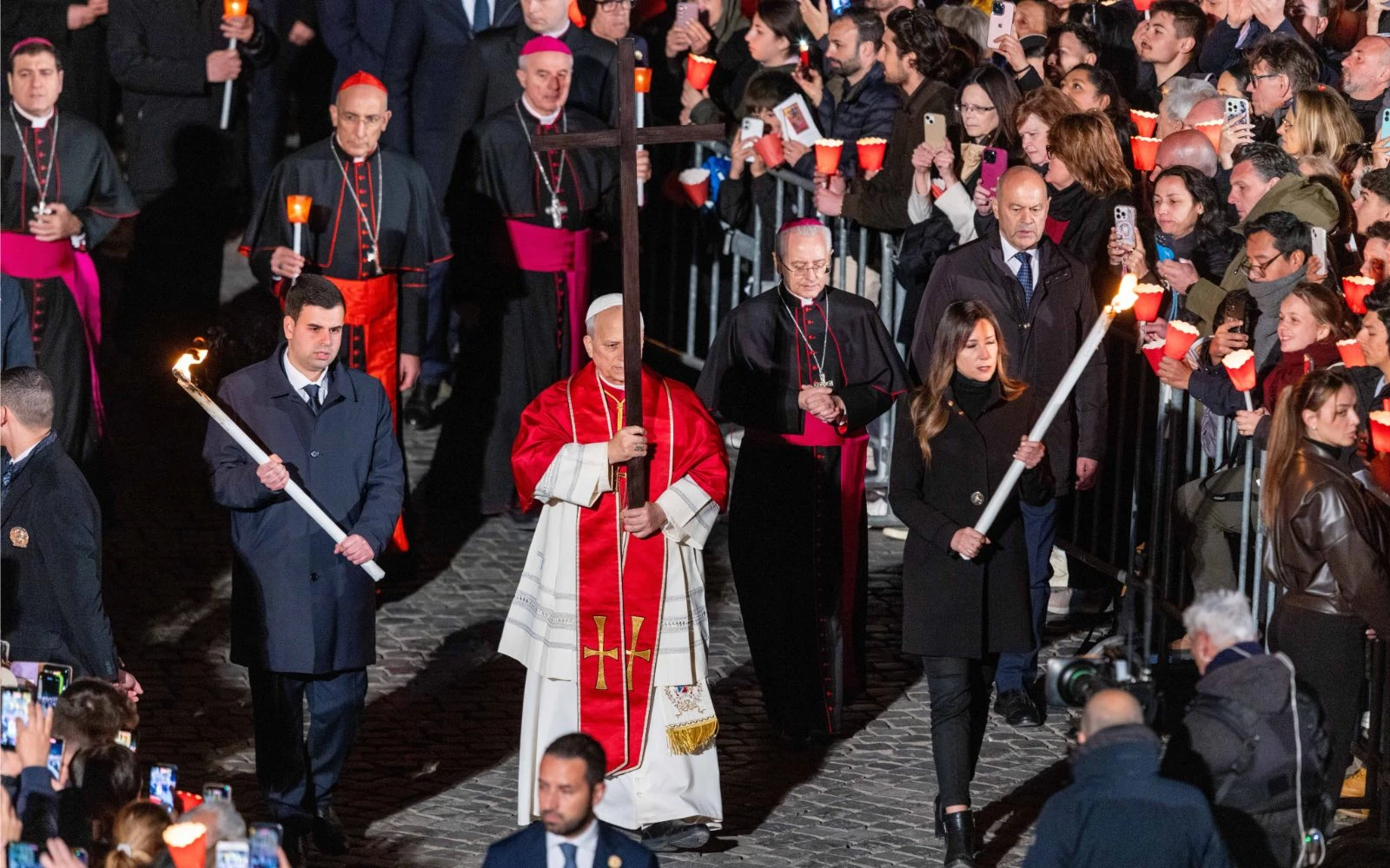 Hacía ya cuatro años que faltaba la presencia de un Pontífice en el Coliseo. Debido a sus frágiles condiciones de salud, el Papa Francisco participó personalmente por última vez en el Anfiteatro Flavio —como también se conoce a la histórica edificación— en 2022. En los años siguientes, su participación fue “sólo por video conexión”.