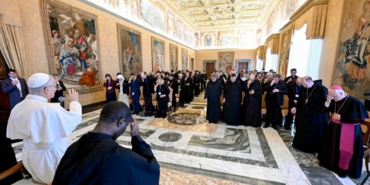 (ZENIT Noticias / Ciudad del Vaticano, 18.11.2025).- Responsables diocesanos de pastoral litúrgica se reunieron en Roma para un curso de actualización organizado por el Pontificio Instituto San Anselmo de Roma. Los participantes fueron recibidos en audiencia por el Papa León XIV el lunes 17 de noviembre en la Sala del Consistorio del Palacio Apostólico. Ofrecemos a continuación la traducción de ZENIT al castellano del discurso del Sumo Pontífice: