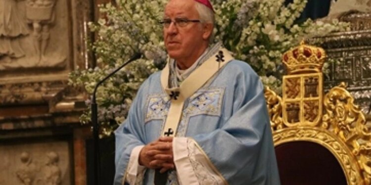 El Arzobispo de Sevilla, Mons. José Ángel Saiz Meneses, con la casulla azul purísima por la Inmaculada. / Crédito: Arzobispado de Sevilla.