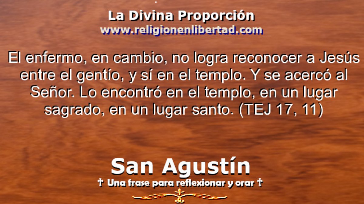 El enfermo, en cambio, no logra reconocer a Jesús entre el gentío, y sí en el templo. Y se acercó al Señor. Lo encontró en el templo, en un lugar sagrado, en un lugar santo. 🔹San Agustín. Tratado sobre el Evangelio de San Juan 17, 11🔹