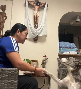 Miles de usuarios se conmueven al ver cómo un perrito acompaña a su dueña en la oración.