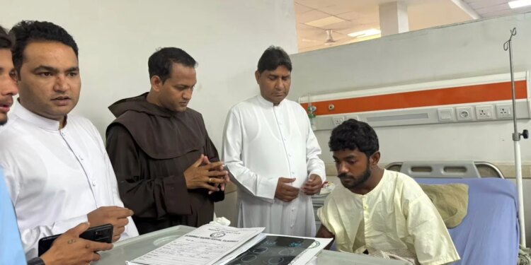 Un fraile capuchino visita a católicos heridos en un hospital de Gujranwala, provincia de Punjab, Pakistán, después de que un camión chocara contra una procesión de Pascua en Mariamabad el 5 de abril de 2026. / Crédito: Foto cortesía del padre Lazar Aslam