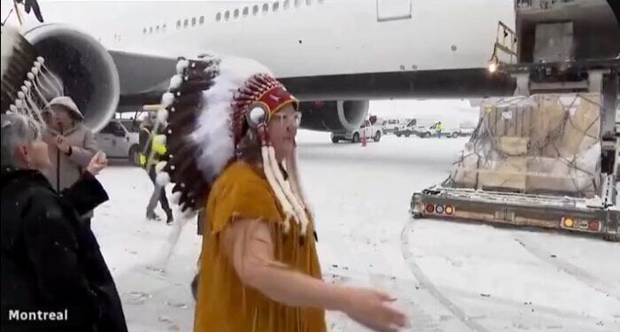 La nevada pista del Aeropuerto Internacional Pierre Elliott Trudeau, en Montreal, fue el escenario de una de las imágenes más simbólicas del año para las comunidades indígenas de Canadá.