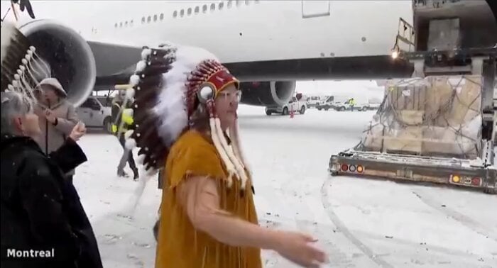 La nevada pista del Aeropuerto Internacional Pierre Elliott Trudeau, en Montreal, fue el escenario de una de las imágenes más simbólicas del año para las comunidades indígenas de Canadá.
