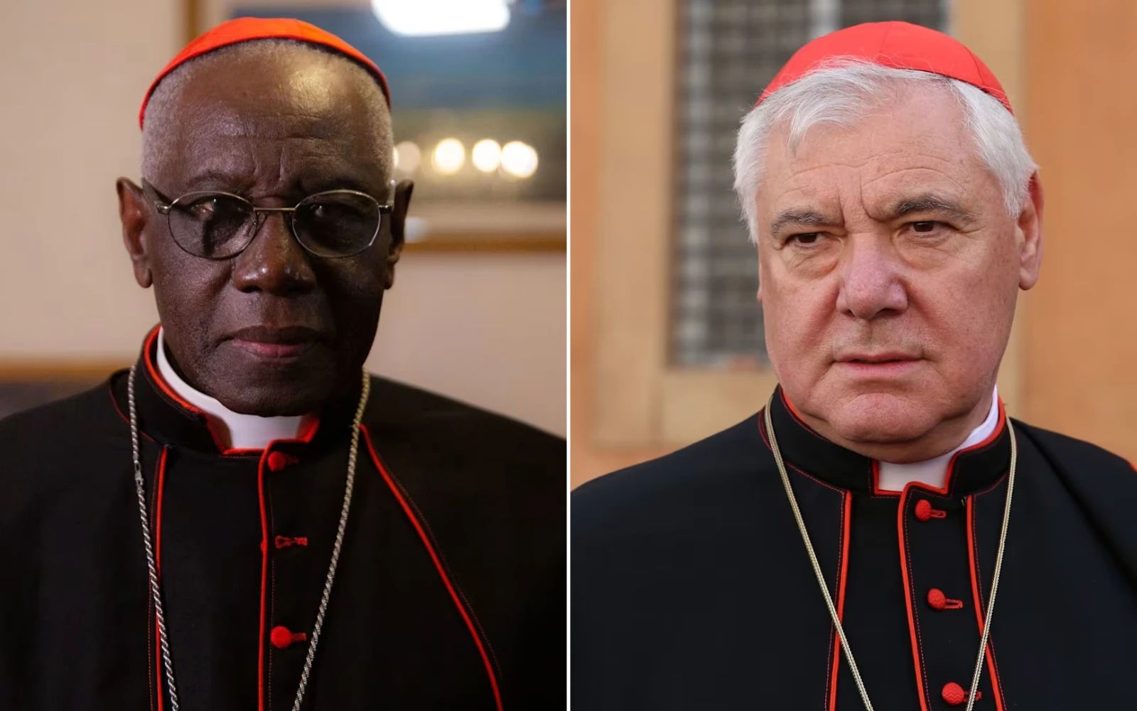 Cardenal Robert Sarah (izquierda) y Cardenal Gerhard Müller (derecha). / Crédito: Daniel Ibañez – EWTN News