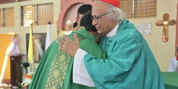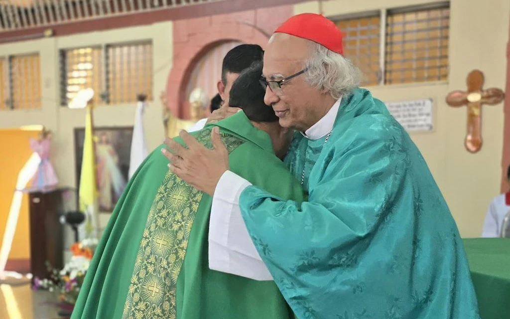 Cardenal Brenes abraza a un sacerdote. / Crédito: Arquidiócesis de Managua.