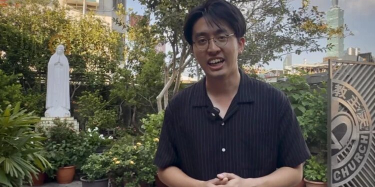Kao Chih Hao, un taiwanés recientemente convertido al catolicismo, en la parroquia del Santo Rosario en Taipéi, Taiwán, en octubre de 2025. / Crédito: Courtney Mares- EWTN News