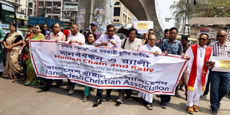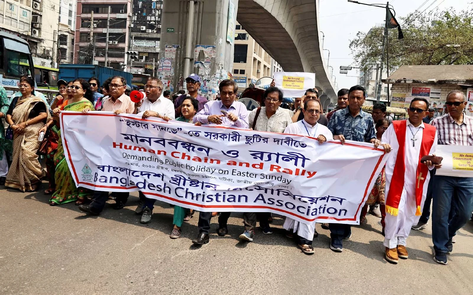 Cristianos en Bangladesh formaron una cadena humana y realizaron una manifestación en la capital el 31 de marzo para exigir que el gobierno declare el Domingo de Pascua como feriado público.