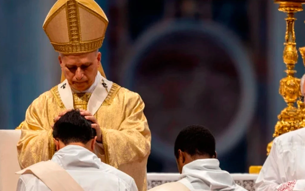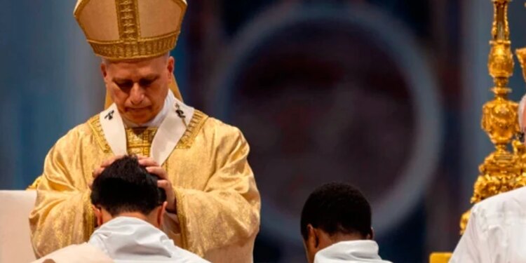 El Papa León XIV en la ordenación de 32 sacerdotes que presidió en junio de 2025, en la Basílica de San Pedro en el Vaticano. / Crédito: Daniel Ibáñez / EWTN News.