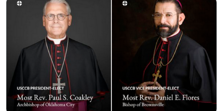 (ZENIT Noticias / Baltimore, 11.11.2025).- La Conferencia de Obispos Católicos de los Estados Unidos (USCCB) se reúne esta semana en Baltimore para su asamblea plenaria. Por la mañana del martes 11 de noviembre, el arzobispo Paul S. Coakley de Oklahoma City fue elegido presidente de la Conferencia, y el obispo Daniel E. Flores de Brownsville fue elegido vicepresidente. Suceden al arzobispo Timothy P. Broglio, arzobispo para los Servicios Militares de los Estados Unidos, y al arzobispo William E. Lori de Baltimore, quienes concluyen sus mandatos como presidente y vicepresidente de la Conferencia, respectivamente.