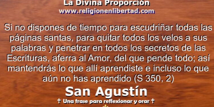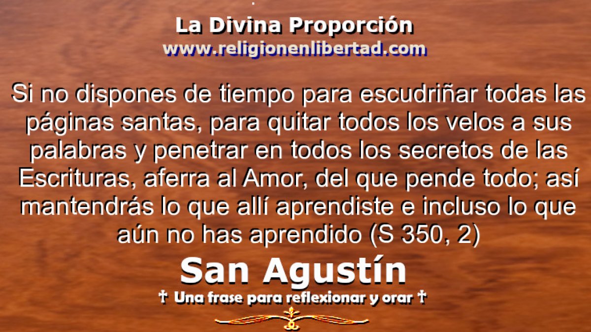 Si no dispones de tiempo para escudriñar todas las páginas santas, para quitar todos los velos a sus palabras y penetrar en todos los secretos de las Escrituras, aferra al Amor, del que pende todo; así mantendrás lo que allí aprendiste e incluso lo que aún no has aprendido 🔹San Agustín. Sermón 350, 2🔹