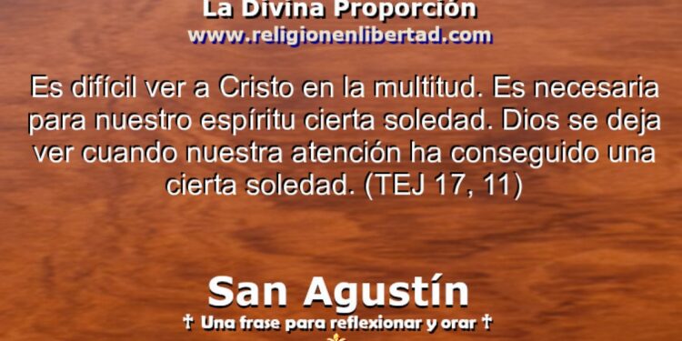 Es difícil ver a Cristo en la multitud. Es necesaria para nuestro espíritu cierta soledad. Dios se deja ver cuando nuestra atención ha conseguido una cierta soledad. 🔹San Agustín. Tratado sobre el Evangelio de San Juan 17, 11🔹