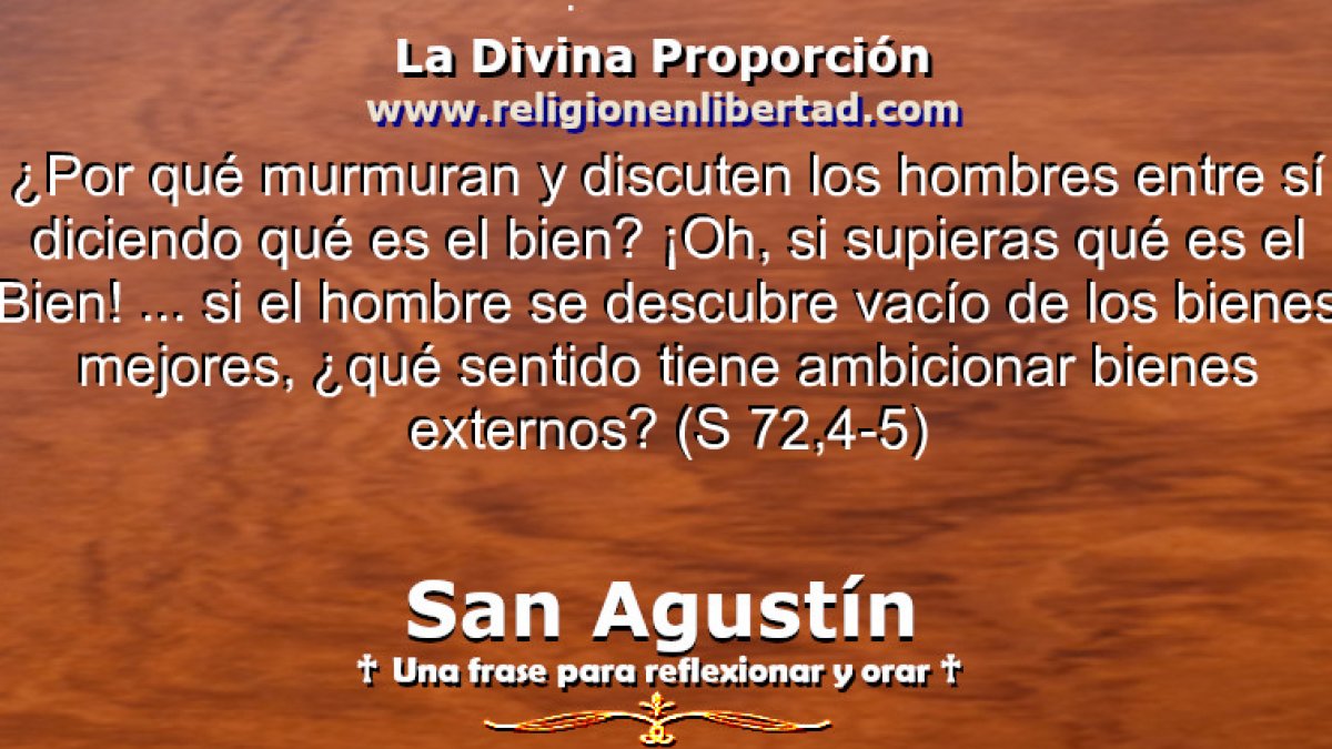 ¿Por qué murmuran y discuten los hombres entre sí diciendo qué es el bien? ¡Oh, si supieras qué es el Bien! … si el hombre se descubre vacío de los bienes mejores, ¿Qué sentido tiene ambicionar bienes externos?🔹San Agustín. S 72, 4-5🔹