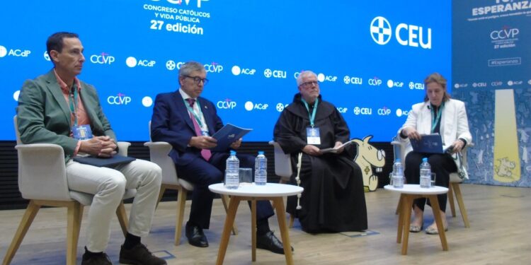 La mesa redonda sobre Dios y la ciencia, con 4 miembros de la Sociedad de Científicos Católicos, fue una de las actividades más intensas y ambiciosas del 27º Congreso Católicos y Vida Pública. Cada uno planteó al menos 3 temas importantes sobre ciencia y fe, lo que acumulados ¡son doce temas amplísimos! A quien le apasionen estos asuntos les recomiendan apuntarse a la Sociedad, que en EEUU existe desde 2016, llegó a España más recientemente y cuenta con 150 miembros en España.